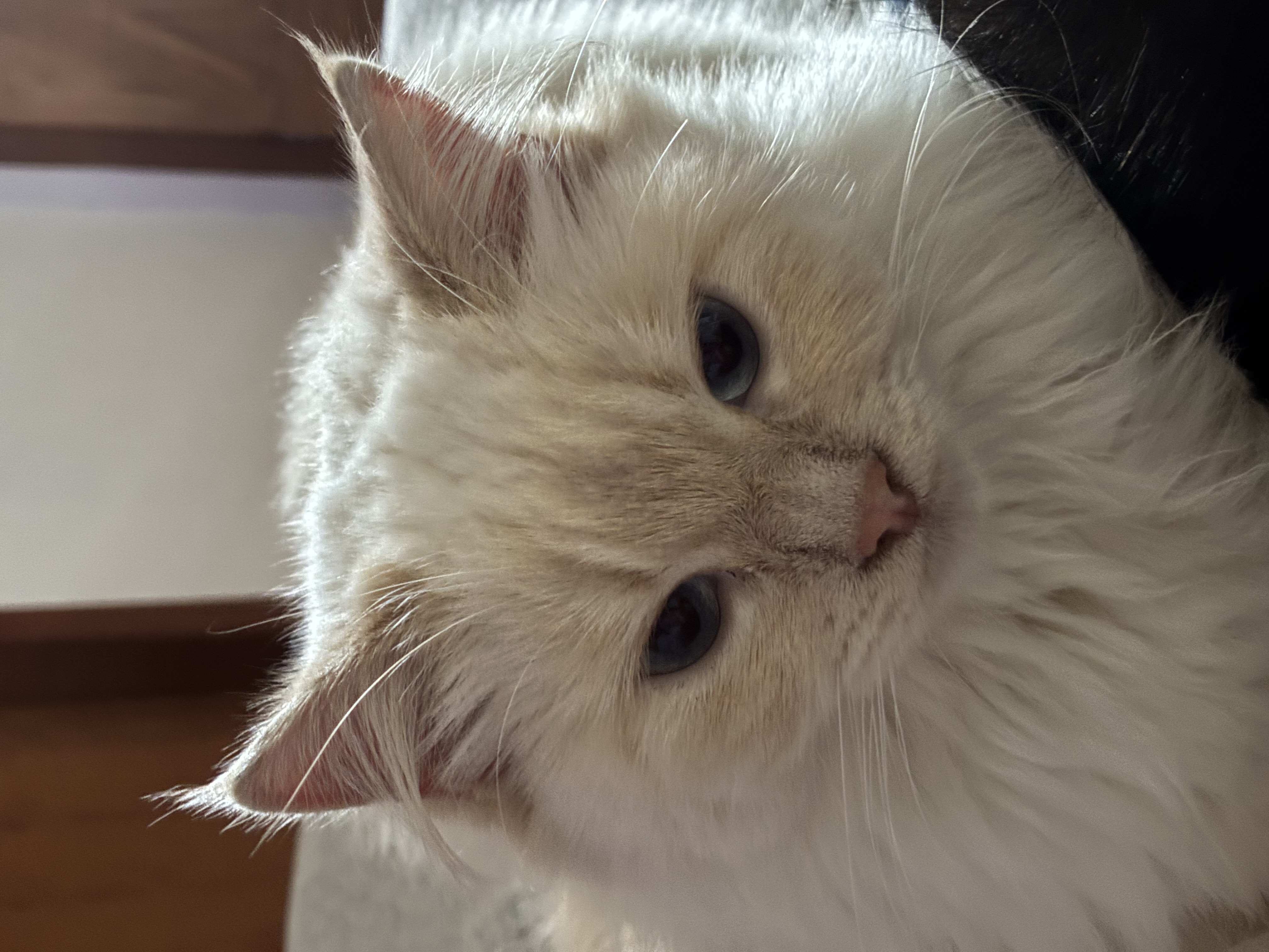 - Observações: Branca com os olhos azuis, pelagem comprida e detalhes meio alaranjados.